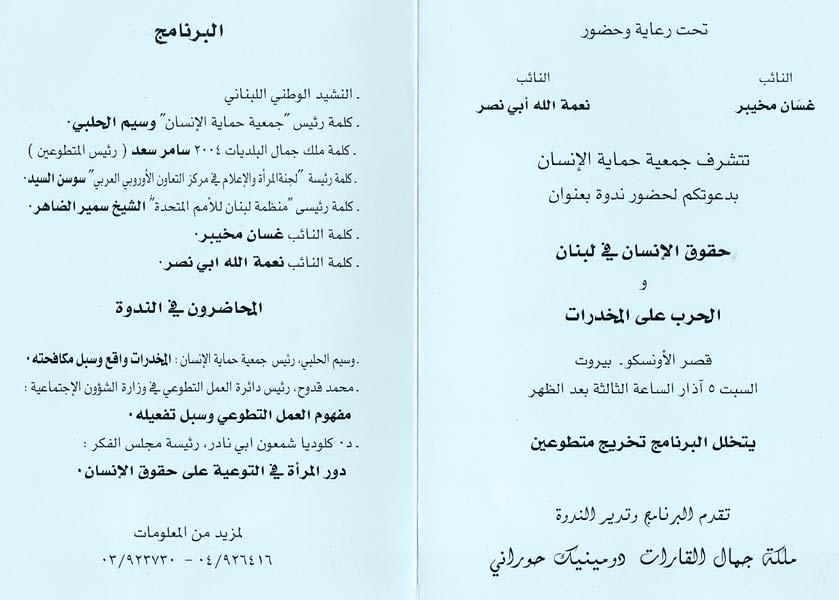 held under the patronage of the two political faces Elbert Moukhaiber and Abi Naser, a conference about Anti Drugs and making a war against it, many political personalities and sociable attended and spoke in it...